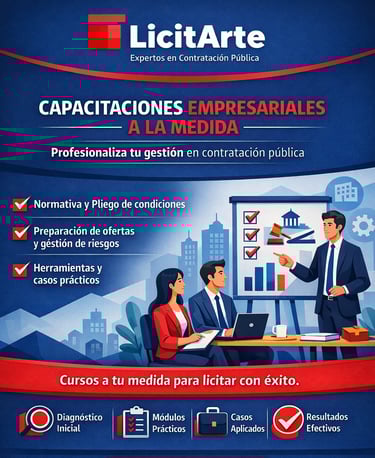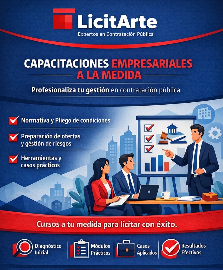 Capacitación diseñado para equipos empresariales que desean fortalecer o profesionalizar su gestión en contratación pública. Se estructura según la realidad de la empresa (giro, tamaño, experiencia, industria y metas), y se adapta a sus procesos internos (roles, flujos de aprobación, control documental y toma de decisiones).