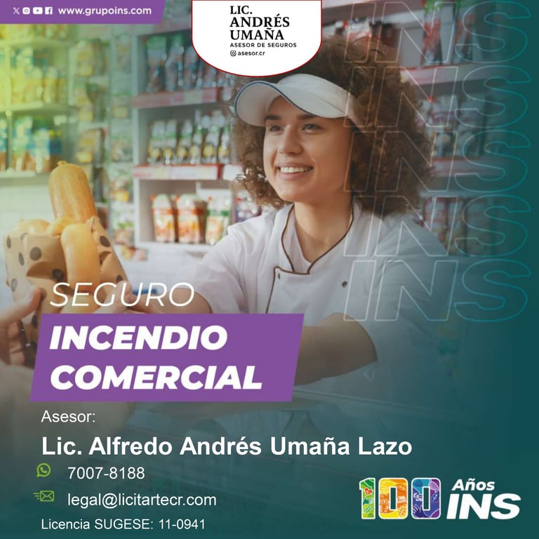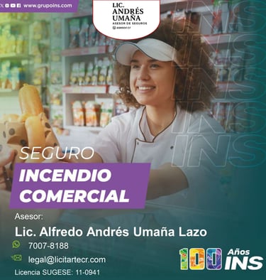 El Seguro de Incendio Comercial e Industrial del INS está diseñado para proteger los bienes de empresas, comercios e industrias ante eventos como incendios, rayos, desastres naturales, vandalismo, y otras eventualidades que puedan afectar sus instalaciones o activos. Su cobertura básica incluye daños por incendio y descargas eléctricas, y puede complementarse con protecciones adicionales como inundaciones, terremotos, pérdida de beneficios, quebradura de cristales, entre otras. Este seguro permite a las empresas mitigar riesgos financieros y operativos, y es especialmente relevante cuando se participa en licitaciones públicas, ya que muchas veces se exige como requisito para contratar con el Estado.