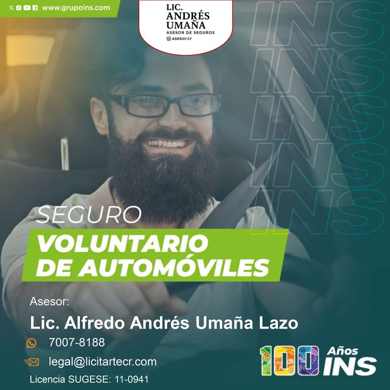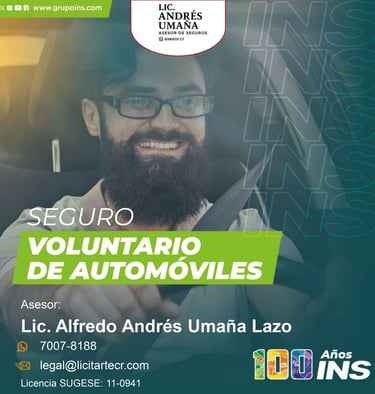 El Lic. Andrés Umaña es asesor independiente de seguros del Instituto Nacional de Seguros (INS), con una sólida trayectoria brindando acompañamiento estratégico a personas emprendedoras, profesionales independientes y pequeñas y medianas empresas (PYMES) en Costa Rica.